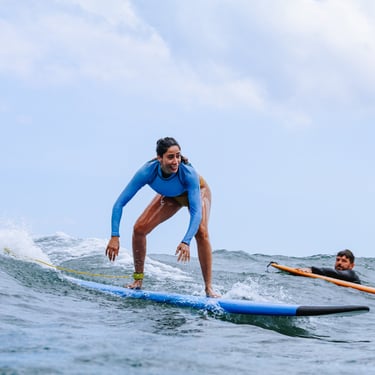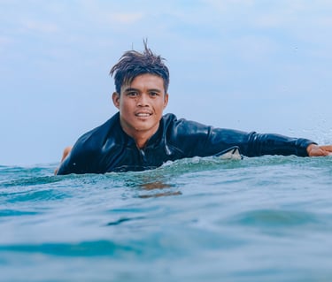 I have been surfing in Sumatra (my home town, Krui) since I was 7 years old. I surfed under a sponsorship when I was a teenager but found a new passion in my life - teaching. I have worked in multiple surf schools. I love working with people and seeing them happy after they managed to stand up and catch a good wave. Most of my students (now friends) are now advanced surfers and feel comfortable in the water independently, I'm very proud of that.